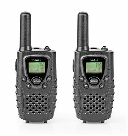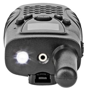 Kompaktní vysílačky, založené na technologii s frekvencí 446 MHz, které vám umožní zůstat v kontaktu s přáteli až do vzdálenosti 8 km na otevřeném prostranství. Díky jasnému LED osvětlení se skvěle hodí na túry, kempování nebo na jakékoli jiné indoorové i outdoorové aktivity. Jejich předností je podpora funkce VOX, tj. přenosu aktivovaného hlasem. Jakmile začnete mluvit, vysílačka se automaticky zapne - je tak perfektní pro handsfree komunikaci. K dispozici je také 2,5 mm jack pro připojení sluchátek. 8 kanálů a 38 kódů CTCSS (subkanálů) pro každý kanál zabraňuje rušení signálu od ostatních dvousměrných rádiových zařízení. Tři baterie typu AAA (nejsou součástí balení) udrží vysílačku v chodu až 2,5 hodiny při nepřetržitém hovoru. Nabíjení je realizováno skrze micro USB kabel, a to bez nutnosti vyjímání baterií z vysílačky (pouze při použití nabíjecích baterií).