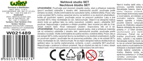 Nehtové studio. Velikost 25cm. Obsahuje lampu na zaschnutí laku, třpytky, ozdoby, rozdělovač prsů, 3laky, pilník na nehty, bílou tužku. baterie 2xAA nejsou součástí.