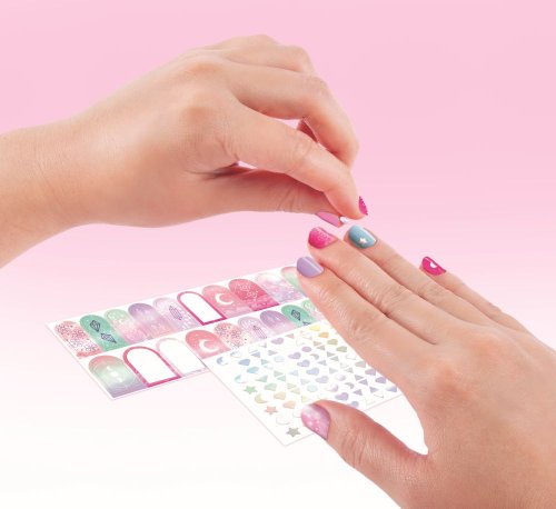 Balení obsahuje sušičku na nehty, 5 barevných laků na nehty na vodní bázi, pilník na nehty, šablony se samolepkami, pěnové polštářky a instrukce. Vhodné od 8 let.