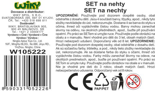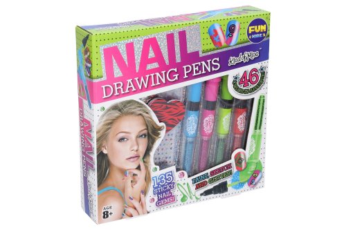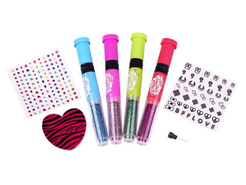 Nehtový set. Balení obsahuje lakovací pera na nehty, flitry, kamínky, nálepky.