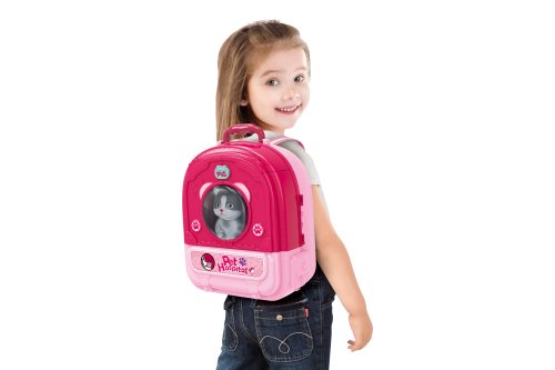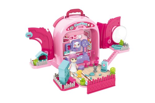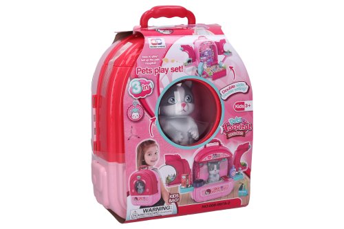 Nemocnice zvířecí v batohu kočka. Rozměry 50x35x30 cm. Velikost kočky 17 cm. Batoh je otevírací ze dvou stran. Balení obsahuje zařízení zvířecí ordinace, figurku kočky a příslušenství: misku, lahvičky, panenku zdravotní sestru, drobnosti do ordinace.