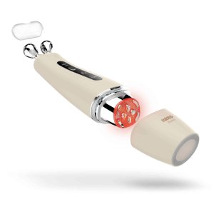 Dvě masážní hlavice: Přístroj obsahuje dva různé nástavce, takže si můžete přizpůsobit rutinu péče o pleť potřebám vaší pleti. Jedna strana je vybavena diamantovými masážními hlavicemi, zatímco druhá má plochou hlavici s osmi masážními body. Diamantové masážní hlavice jemně kloužou po linii čelisti a tváří. V kombinaci s EMS jemně stimulují obličejové svaly a pomáhají definovat ovál a zvýraznit tvar V přesně tam, kde je to potřeba. Plochá hlavice s osmi masážními body vyzařuje červené a žluté LED světlo a pomocí zvukových vibrací stimuluje mikrocirkulaci a zlepšuje pevnost pokožky. Střídejte příslušenství pro pestrou rutinu, která udrží vaši péči o pleť flexibilní a přizpůsobenou vašim preferencím.