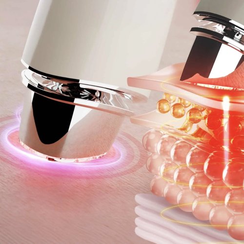 Režim RF + žlutá LED dioda: Poslední režim využívá RF vlny se žlutým LED světlem (590 nm), zvukové vibrace a plochou hlavici s osmi masážními body. Rozjasňuje a revitalizuje, stimuluje produkci kolagenu a využívá teplo k podpoře regenerace buněk, zpevnění a posílení struktury pokožky.