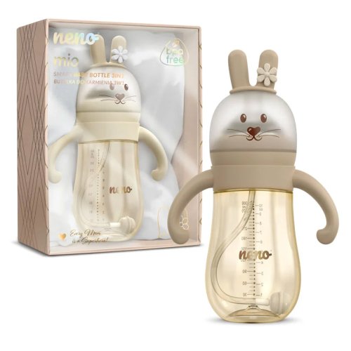 Neno Mio je inteligentní kojenecká láhev 3 v 1 s dudlíkem proti kolice, který ovlivňuje přirozenou polohu jazyka. Je ideální pro každodenní krmení a při rozšiřování jídelníčku vašeho miminka. Je vyrobena z PPSU materiálu, který je odolný vůči mechanickému poškození. Má speciální průtokový systém s otvorem ve tvaru křížku, který lze použít k podávání mléka, vody, čaje, šťávy a jiného tekutého jídla.