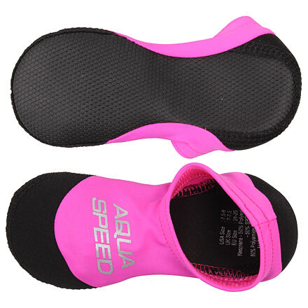 Dětské neoprenové ponožky Aqua-Speed Neo jsou více, než jen zajímavý doplněk pro děti na pláž nebo k bazénu. Ponožky jsou skladné, lehké, pohodlné, snadno se nazouvají, nebrání v přirozeném pohybu a hlavně poskytují ochranu před horkým pískem, chrání chodidla na kamenitých plážích a v případě bazénů minimalizují riziko uklouznutí. Ponožky jsou vyrobeny z měkkého a elastického materiálu v horní části a silnějšího neoprenu na podrážce s protiskluzovým povrchem. Material: Neopren (50% Polyester 50% Guma SBR); 80% Polyamid 20% Elastan