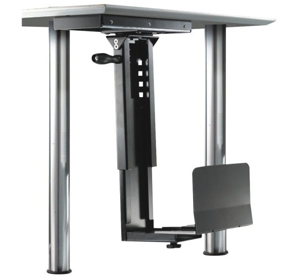 Otočný držák pro vertikální montáž počítače pod stůl. Nabízí snadno nastavitelnou šířku a výšku pro většinu stolních a věžových počítačů. Maximální nosnost je 30 kg. Držák lze otáčet o 180°. Veškerý instalační materiál je součástí výrobku.
