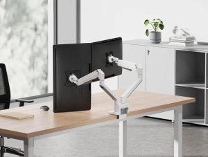 Stolní držák Neomounts DS70-250WH2 pro dvojici monitorů s úhlopříčkou displeje až 32 palců a s nosností až 9 kg. Stolní držák díky svému provedení efektivně šetří místo. Konstrukce umožňuje naklánění, otáčení a jednoduché nastavení do libovolného úhlu. Díky tomu usnadňuje sledování displeje z jakékoli pozice. Samozřejmostí je také nastavení výšky a držák Neomounts DS70-250WH2 do puntíku splní všechny požadavky na ergonomii. Potěší rovněž integrovaný systém pro správu kabelů, díky čemuž zůstane váš pracovní stůl čistý a bez klubka nevzhledných kabelů.