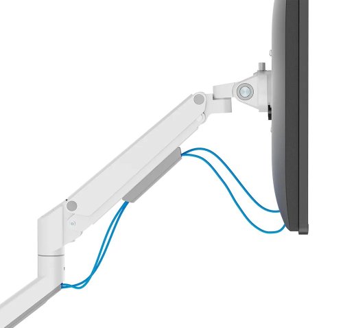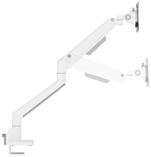 Plně pohyblivý stolní držák pro dva ploché nebo zakřivené monitory s úhlopříčkou 17" až 32" a maximální hmotností 18 kg (2× 9 kg). Všestranná technologie naklápění, otáčení a rotace umožňuje vytvořit optimální pozorovací úhel. Držák má nastavitelnou výšku 21,5–49,5 cm, hloubku 7–45,5 cm a je vhodný pro obrazovky, které odpovídají vzoru otvorů VESA 75 × 75 až 100 × 100 mm. Potěší také systém pro úhledné vedení kabelů. Balení obsahuje stolní svorku i průchodku.
