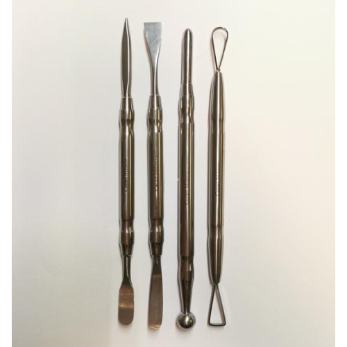 Čtyřdílná sada modelovacích nástrojů na čokoládu. Každý z nich má oboustranné zakončení.