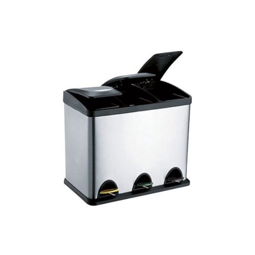 Elegantní nášlapný nerezový koš na tříděný odpad Každá nádoba má separátní otvírání - barevně odlišené Objem 1 nádoby 15,0 l Rozměry 60,0 x 48,0 x 32,0 cm (š x v x h)