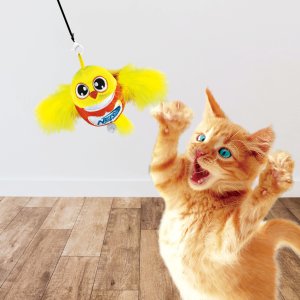 Tato hračka je určena pro aktivní a interaktivní hru s vaší kočkou. Plyšový ptáček se zvonečkem připevněným k hůlce, která připohybu napodobuje pohyb kořisti podporuje pohyb kočky a její reflexy. Součástí hračky je také sáček s šantou kočičí, která zvyšuje zájem kočky a podporuje přirozené lovecké instinkty. Plyšový povrch je měkký na dotek, zatímco konstrukce je navržena pro hru – obsahuje peříčka nebo střapce, které se během aktivity pohybují a zvyšují stimulaci. Zvonek vydává jemný zvuk, když se hračka pohybuje, což obohacuje zrak i sluch.