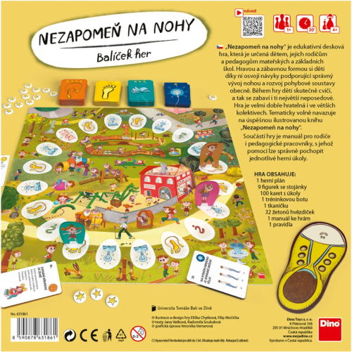 Edukační hra, která zábavnou formou seznamuje děti se základními informacemi o nohách a pohybovém aparátu a motivuje je je k pohybovým aktivitám a cvičení. Od 4 let, až pro 15 hráčů, 30 minut.