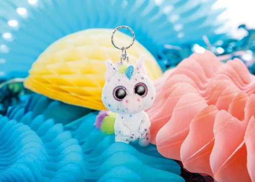 Jednorožec Uberto je skvělý barevný přítel, který je pokrytý třpytivými hvězdičkami. Bílý plyš a růžové třpytivé oči z něj dělají skvělého společníka, který vám vždy vykouzlí úsměv na tváři. Výška: 9 cm Věk: 3+