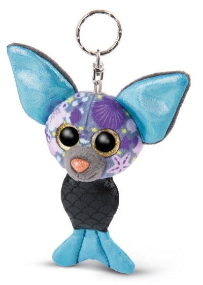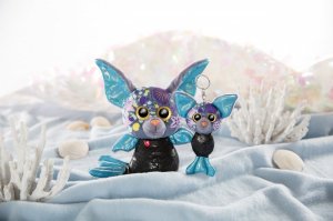 GLUBSCHIS Netopýr z edice Mermaid je absolutně okouzlující. Modrá a černá třpytivá látka a velké zlaté třpytivé oči dělají z přívěsku na klíče ve stylu netopýří mořské panny něco velmi speciálního. Výška: 12cm. Věk: 3+