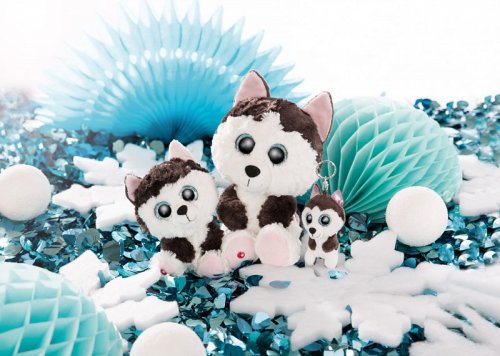 Přívěsek na klíče GLUBSCHIS s Husky Barkleym v černé a bílé barvě. Modré oči a růžové uši z něj dělají opravdového miláčka. Klíčenku 9 cm velkou lze připevnit pomocí kovového kroužku na klíče. Věk: 3+