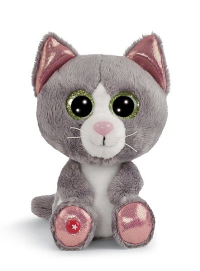 Glubschis Plyšová kočička Felinja vás okouzlí svým hebkým kožíškem, zelenýma třpytivýma očima, roztomilým růžovým nosíkem s dlouhými fousky a okouzlujícím třpytivým materiálem v uších a na tlapkách.
