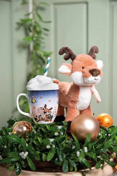 Dnes je velký den v severské vesnici. Každoroční závod sáňkařů klubu zimních sportů začne za pár minut a každý ze tří favoritů bude nadšeně leštit svoje závodní vozidla. Kdo vyhraje závod tentokrát? Liška, drzý zajíček, Noshy tučňák nebo sob Jonte? Poté se vystřelí ze startovací pistole. Všichni současně spadnou ze saní a valí se přes cílovou čáru. Nyní jsou tři vítězové, kteří si zaslouží velký zlatý pohár naplněný lahodnými vánočními sušenkami. Je vyroben převážně z recyklovaných plastových lahví a je tedy nejen skvělým kamarádem, ale také šetrnější k životnímu prostředí. Veselý sobík s krásnou zimní šálou. Výška: 25cm Věk: 0+