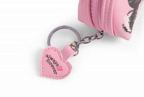 Pár labutí, jejichž krky tvoří srdce, je považován za symbol věčné lásky. Dvě labutě LOVE z kolekce LOVE Classic od NICI zdobí růžový penál, který má navíc pevný kovový kroužek na klíče. Kouzelný a zároveň praktický penál na zip nabízí prostor pro mince, make-up potřeby, propisky či jiné drobnosti a je vybaven přívěskem srdce "always & forever". Penál je součástí iniciativy NICI GREEN, jejíž produkty jsou vyrobeny z recyklovaných materiálů, jako jsou staré PET lahve. Rozměry: 11x5x9 cm. Věk: 3+
