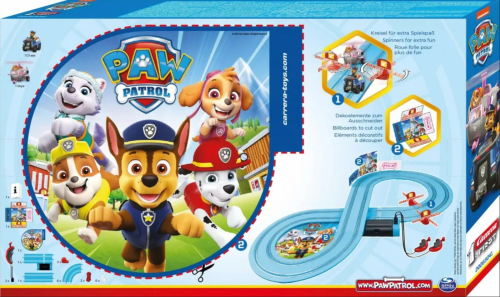 Autodráha Carrera FIRST dlouhá 2,4m s auty ze seriálu Tlapková patrola, pro děti od 3 let, na baterie, obsahuje rovinky, zatáčky, točící vrtule, ovladače a dekorace s tématikou Paw Patrol. Délka trati: 2,4m Rozměry po sestavení: 93 x 45cm Rozměry balení 50 x 30 x 7 cm. Vhodné pro děti od 3 let.