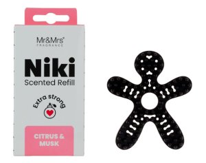 Panáček Niki Big Citrus & Musk obsahuje speciální esenciální oleje, které provoní váš vůz po dobu až 3 měsíců. Bojuje s nepříjemnými pachy, jako je například kouř z cigaret a příjemně osvěží vzduch. Neobsahuje alkohol. Panáčka stačí zasunout do ventilátoru auta díky úchytu, který má na zádech.