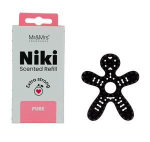 Panáček Niki Big Classic Pure obsahuje speciální esenciální oleje, které provoní váš vůz po dobu až 3 měsíců. Bojuje s nepříjemnými pachy, jako je například kouř z cigaret a příjemně osvěží vzduch. Neobsahuje alkohol. Panáčka stačí zasunout do ventilátoru auta díky úchytu, který má na zádech.