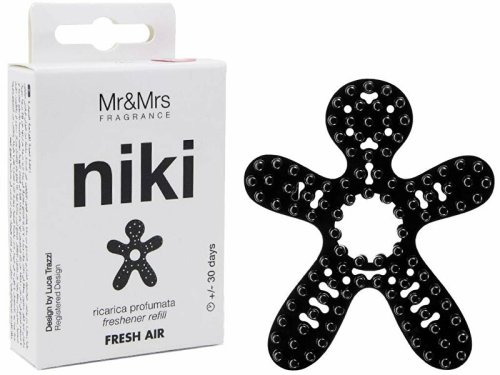 Panáček Niki Big Fresh Air obsahuje speciální esenciální oleje, které provoní váš vůz po dobu až 3 měsíců. Bojuje s nepříjemnými pachy, jako je například kouř z cigaret a příjemně osvěží vzduch. Neobsahuje alkohol. Panáčka stačí zasunout do ventilátoru auta díky úchytu, který má na zádech.