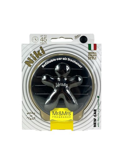 Originální autovůně ve tvaru panáčka s novým 3D vzorem přináší květinovou vůni v elegantním designu "Titanium Chrome". Dvoudílné provedení umožňuje snadnou výměnu náplně a zajišťuje optimální proudění vzduchu ve ventilaci. Vůně kombinuje tóny pomeranče, jablka a šafránu s květinovým srdcem a smyslným dřevitým základem, přičemž vydrží až 45 dní. Vyrobeno z netoxické pryže EVA a ABS plastu, design pochází od L. Trazziho a nese certifikace IFRA a FSC.