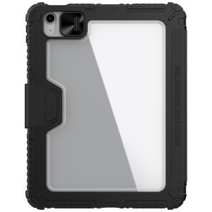 Nillkin Bumper Pro ochranné pouzdro s praktickým flipem, který slouží zároveň jako stojánek je vyrobeno z vybraného materiálu TPU a PC. Čočka fotoaparátu je chráněna posuvným krytem Zajišťuje dokonalou ochranu a funkčnost. Zesílené rohy perfektně ochrání hrany tabletu. Flip krytu je z PU kůže. Unikátní skládací kryt zobrazuje iPad ve všech zvolených úhlech pro psaní, čtení a prohlížení webu. Složení krytu je velmi jednoduché. Vestavěná sestava magnetů podporuje funkce iPad pro automatické probuzení / spánek. V pouzdře najdete prostor pro vaši Apple tužku.