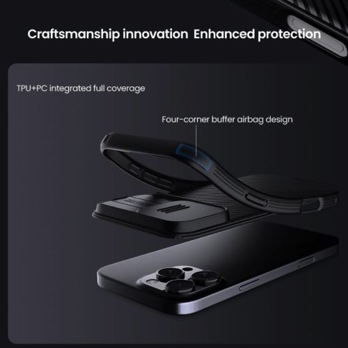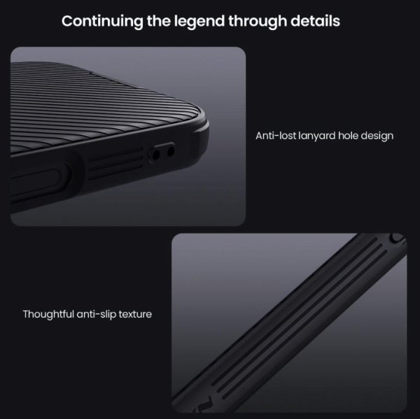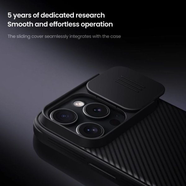 Nillkin CamShield PRO je unikátní kryt s posuvným krytem čočky fotoaparátu. Navíc je oproti klasickému CamShield unikátní v tom, že se skládá ze dvou materiálů. Záda krytu jsou vyrobena z pevného a odolného plastu a to včetně krytu fotoaparátu. Rámeček krytu je vyroben z měkčeného TPU plastu, pro nejlepší ochranu okrajů a rohů telefonu.