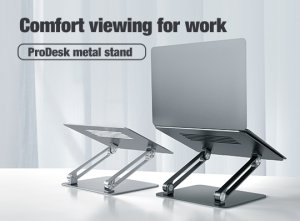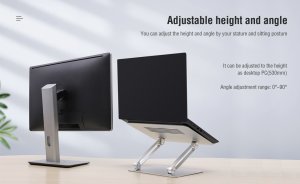 Nillkin ProDesk je nastavitelný stojánek pod notebook, který vyniká svým luxusním vzhledem, kvalitním zpracováním a lze ho použít s notebooky do velikosti až 17". Pomocí stojánku si umístíte svůj notebook na stůl do libovolné pozice. Ať už používáte samotný notebook nebo slouží jako druhý monitor, tento stojánek vám umožní nastavit přesně tu pozici, kterou potřebujete. Nilkin ProDesk je dimenzovaný až do hmotnosti 12,5kg, takže se nemusíte bát ani o ten nejtěžší notebook, který bude držet spolehlivě na svém místě jak dlouho budete potřebovat. V podstavci jsou umístěné větrací otvory pro maximálně efektivní chlazení notebooku. Stojánek je vyroben z kvalitního hliníku se spolehlivě dimenzovanými klouby a pískovaným povrchem. Části pod notebookem a základna jsou vybaveny protiskluzovou silikonovou podložkou, aby stojánek i notebook držel spolehlivě na svém místě.