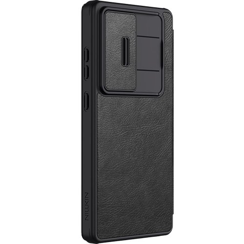 Nillkin QIN Book PRO pouzdro je vyrobeno z kvalitní PU kůže, otevírá se do boku jako knížka a navíc je oproti klasickému QIN Book vybaveno posuvným krytem čoček fotoaparátu.