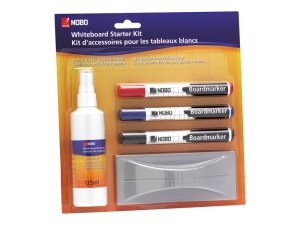 Sada základních pomůcek k popisovacím tabulím v blistru. Vhodné pro všechny typy bílých tabulí stíratelných za sucha.