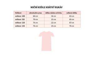 Noční košile s krátkým rukávem materiál 95% Bavlna, 5% Elastan 180g/m2 praní na 40°C šetrné odstředění sušit v sušičce nedoporučujeme žehlit do 110°C Noční košile s krátkým rukávem pro naše nejmenší.