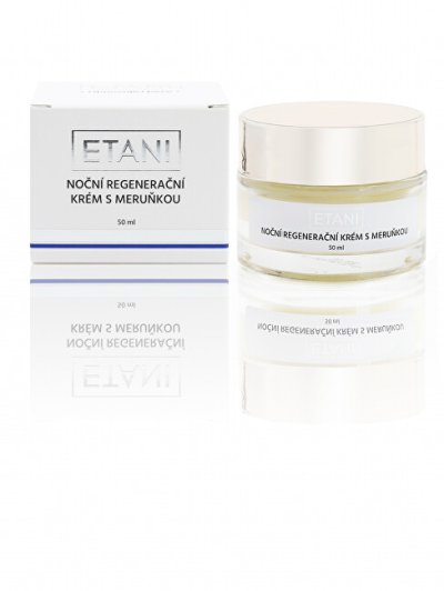 Noční regenerační krém s meruňkou ETANI je doslova nabitý aktivními látkami. Hlavní aktivní látkou je meruňka nebo-li meruňkový olej, který pokožku vyživuje, hydratuje, zvláčňuje, regeneruje a dodává jí zářivý vzhled. Díky meruňkovému oleji se krém lehce vstřebává do pleti a nezanechává pocit mastnosti. Je vhodný pro všechny typy pleti, dokonce včetně citlivé. Další důležitou složkou v našim krému je avokádo, které podporuje obnovu buněk a regeneruje pokožku. Receptura tohoto výživného krému je dále obohacena o bambucké máslo, které má mimořádné ochranné schopnosti. Díky této aktivní látce, vám náš krém poskytne dokonalou hydrataci, podporuje produkci kolagenu, zmírní zarudlost a svědění pokožky. Chrání buňky před působením oxidačního stresu. Vhodný pro citlivou pokožku. Výhody a přednosti ETANI krému? Regeneruje pleť. Zklidňuje podráždění pleti. Hydratuje pokožku. Zvláčňuje pleť. Redukuje vrásky. Vyživuje pleť. Jaké jsou hlavní účinné látky v nočním krému? Meruňkový olej - Zvlhčuje a vyživuje pleť, je vhodný pro suchou pokožku. Dokáže pokožku ubránit před pokožku před působením volných radikálů. Avokádový olej - Má silně hydratační vlastnosti. Pleť krásně vyživí a dodá jí potřebné vitamíny. Bambucké máslo - Má veliké spektrum využití. V kosmetice je skvělé na velmi vysušenou pokožku, strie, ekzémy, vrásky a lupenku. Panthenol - Má hydratační, regenerační a uklidňující účinky pro pokožku. Chrání kůži před poškozením, ke kterému dochází při opalování. Růže damašská - Omlazuje pleť a podporuje obnovu kožních buněk. Růžový olej je mírně antibiotický a je tedy vhodný pro zánětlivou pleť. Kyselina hyaluronová - Postará se o dokonalou hloubkovou hydrataci. V kombinaci s glycerinem pleť vyhlazuje, zjemňuje a dodává jí zdravý a pěstěný vzhled. Měsíček lékařský - Na pokožku má zklidňující, regenerační, hojivé a anti-aging účinky. Napomáhá obnovit kožní tkáň a podporuje tvorbu kolagenu. Dokáže chránit pleť před působením volných radikálů a následným poškozením.