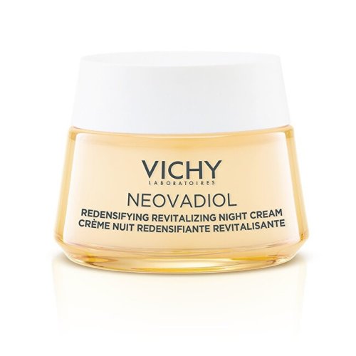 Hormonální změny v období kolem menopauzy urychlují stárnutí pleti, která ztrácí elasticitu a hutnost. Kontury jsou méně vyrýsované. Návaly horka mohou způsobovat nepříjemné pocity na pleti. Laboratoře Vichy vyvinuly lehký, osvěžující noční krém s obsahem Termální vody Vichy vulkanického původu obohacené o 15 minerálů, Proxylanu, výtažku z kasie a kyseliny hyaluronové. Lehký a svěží gelový krém s okamžitým chladivým efektem pomáhá vyhladit pokožku a zároveň zvyšuje jas pleti.