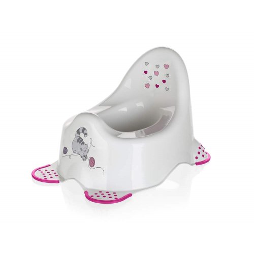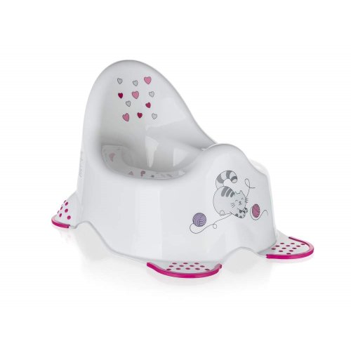 Nočník CAT díky hladkému povrchu usnadňuje čištění. Nočník je maximálně stabilní díky širokým protiskluzovým podnožkám. Pohodlné sezení zajistí anatomický tvar a vysoká opěrka. Zvýšená centrální sekce zabraňuje vyšplíchnutí obsahu nočníku.