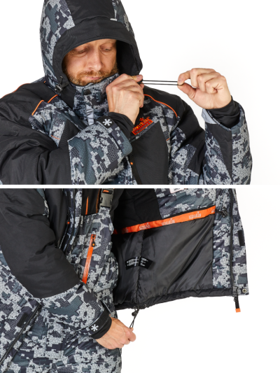 Lepené švy pro maximální odolnost proti pronikání vody. Dvoucestný přední zip YKK s ochrannou légou, která chrání před větrem a deštěm. Nastavitelná kapuce (dvoucestná) pro dokonalou ochranu hlavy a krku. Stahovací šňůrka v pase a spodní části bundy pro individuální přizpůsobení a tepelný komfort. Praktické vnitřní a vnější kapsy pro uložení drobností. Dvě prostorné kapsy s voděodolnými zipy pro bezpečné uložení cenností. Teplá kapsa na mobilní telefon, která chrání baterii před vybitím v chladu. Nastavitelné manžety na rukávech pro zabránění vniknutí sněhu a větru. Kapsy na zahřívání rukou pro rychlé zahřátí prstů. Reflexní bezpečnostní prvky pro zvýšení viditelnosti za šera a tmy.