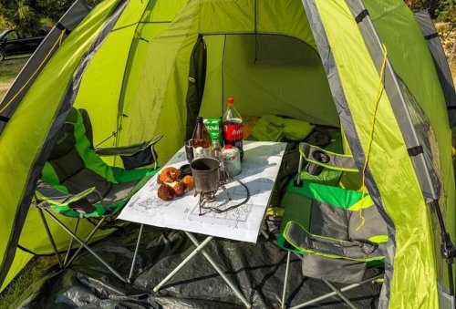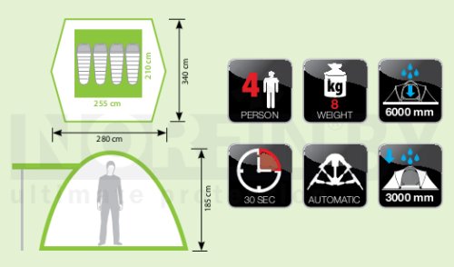 Tento stan je ideální pro 4 osoby a nabízí poloautomatický rám pro snadné postavení. Vybaven je prostornou předsíní, ve které se pohodlně postavíte, a velkou odnímatelnou ložnicí.