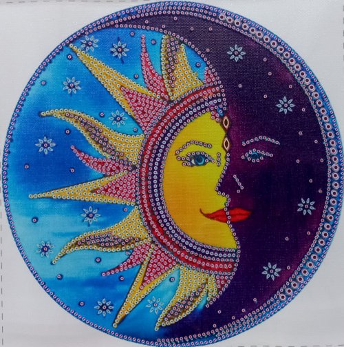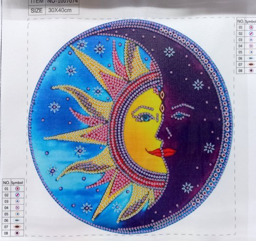 Balení obsahuje: plátno s předtištěným obrázkem, pero na aplikaci kamínků, misku na vysypání kamínků, vosk na nalepení, sadu barevných kamínků Diamantové malování - postup: Horní strana plátna je potažena lepidlem a překrytá průhlednou folií. Folii sundávejte postupně po částech tak, jak budete aplikovat kamínky. Při sejmutí celé folie najednou se může lepicí vrstva znečistit a kamínky by nemusely tak dobře držet. Plátno obsahuje znaky, které jsou uvedeny v přiložené legendě a odkazují na příslušný sáček s kamínky označený číslem. Kamínky z daného sáčku vysypejte do misky. Do hrotu pera naberte vosk, díky kterému se kamínky snadno přichytí na pero. Kamínky perem nanášejte na obrázek. Po nalepení dané barvy kamínky nasypejte zpět do sáčku a pokračujte s další barvou.