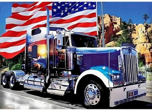 NORIMPEX Diamantové malování Americké auto s vlajkou 30x40cm
