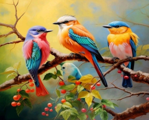 NORIMPEX Diamantové malování Barevní ptáčci 30x40cm