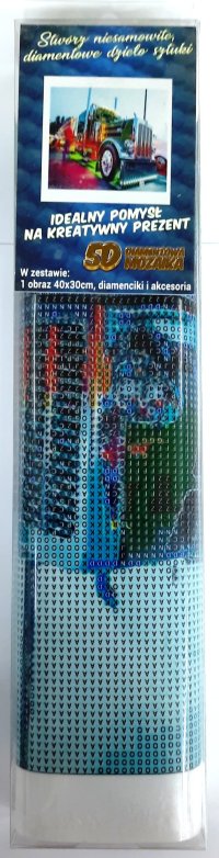 Balení obsahuje: plátno s předtištěným obrázkem, pero na aplikaci kamínků, misku na vysypání kamínků, vosk na nalepení, sadu barevných kamínků Diamantové malování - postup: Horní strana plátna je potažena lepidlem a překrytá průhlednou folií. Folii sundávejte postupně po částech tak, jak budete aplikovat kamínky. Při sejmutí celé folie najednou se může lepicí vrstva znečistit a kamínky by nemusely tak dobře držet. Plátno obsahuje znaky, které jsou uvedeny v přiložené legendě a odkazují na příslušný sáček s kamínky označený číslem. Kamínky z daného sáčku vysypejte do misky. Do hrotu pera naberte vosk, díky kterému se kamínky snadno přichytí na pero. Kamínky perem nanášejte na obrázek. Po nalepení dané barvy kamínky nasypejte zpět do sáčku a pokračujte s další barvou.