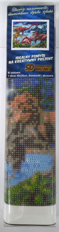 Balení obsahuje: plátno s předtištěným obrázkem, pero na aplikaci kamínků, misku na vysypání kamínků, vosk na nalepení, sadu barevných kamínků Diamantové malování - postup: Horní strana plátna je potažena lepidlem a překrytá průhlednou folií. Folii sundávejte postupně po částech tak, jak budete aplikovat kamínky. Při sejmutí celé folie najednou se může lepicí vrstva znečistit a kamínky by nemusely tak dobře držet. Plátno obsahuje znaky, které jsou uvedeny v přiložené legendě a odkazují na příslušný sáček s kamínky označený číslem. Kamínky z daného sáčku vysypejte do misky. Do hrotu pera naberte vosk, díky kterému se kamínky snadno přichytí na pero. Kamínky perem nanášejte na obrázek. Po nalepení dané barvy kamínky nasypejte zpět do sáčku a pokračujte s další barvou.