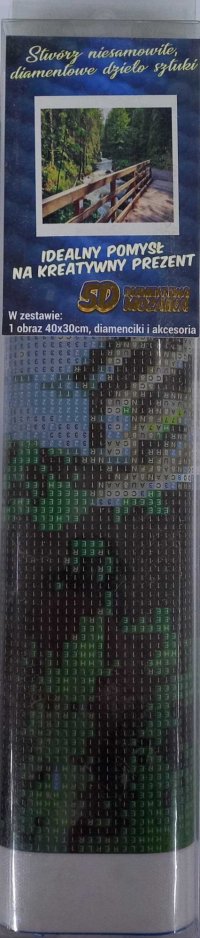 Balení obsahuje: plátno s předtištěným obrázkem, pero na aplikaci kamínků, misku na vysypání kamínků, vosk na nalepení, sadu barevných kamínků Diamantové malování - postup: Horní strana plátna je potažena lepidlem a překrytá průhlednou folií. Folii sundávejte postupně po částech tak, jak budete aplikovat kamínky. Při sejmutí celé folie najednou se může lepicí vrstva znečistit a kamínky by nemusely tak dobře držet. Plátno obsahuje znaky, které jsou uvedeny v přiložené legendě a odkazují na příslušný sáček s kamínky označený číslem. Kamínky z daného sáčku vysypejte do misky. Do hrotu pera naberte vosk, díky kterému se kamínky snadno přichytí na pero. Kamínky perem nanášejte na obrázek. Po nalepení dané barvy kamínky nasypejte zpět do sáčku a pokračujte s další barvou.