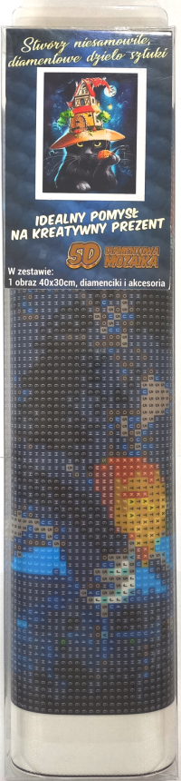 Balení obsahuje: plátno s předtištěným obrázkem, pero na aplikaci kamínků, misku na vysypání kamínků, vosk na nalepení, sadu barevných kamínků Diamantové malování - postup: Horní strana plátna je potažena lepidlem a překrytá průhlednou folií. Folii sundávejte postupně po částech tak, jak budete aplikovat kamínky. Při sejmutí celé folie najednou se může lepicí vrstva znečistit a kamínky by nemusely tak dobře držet. Plátno obsahuje znaky, které jsou uvedeny v přiložené legendě a odkazují na příslušný sáček s kamínky označený číslem. Kamínky z daného sáčku vysypejte do misky. Do hrotu pera naberte vosk, díky kterému se kamínky snadno přichytí na pero. Kamínky perem nanášejte na obrázek. Po nalepení dané barvy kamínky nasypejte zpět do sáčku a pokračujte s další barvou.