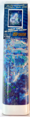 Balení obsahuje: plátno s předtištěným obrázkem, pero na aplikaci kamínků, misku na vysypání kamínků, vosk na nalepení, sadu barevných kamínků Diamantové malování - postup: Horní strana plátna je potažena lepidlem a překrytá průhlednou folií. Folii sundávejte postupně po částech tak, jak budete aplikovat kamínky. Při sejmutí celé folie najednou se může lepicí vrstva znečistit a kamínky by nemusely tak dobře držet. Plátno obsahuje znaky, které jsou uvedeny v přiložené legendě a odkazují na příslušný sáček s kamínky označený číslem. Kamínky z daného sáčku vysypejte do misky. Do hrotu pera naberte vosk, díky kterému se kamínky snadno přichytí na pero. Kamínky perem nanášejte na obrázek. Po nalepení dané barvy kamínky nasypejte zpět do sáčku a pokračujte s další barvou.