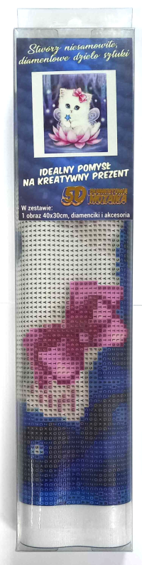 Balení obsahuje: plátno s předtištěným obrázkem, pero na aplikaci kamínků, misku na vysypání kamínků, vosk na nalepení, sadu barevných kamínků Diamantové malování - postup: Horní strana plátna je potažena lepidlem a překrytá průhlednou folií. Folii sundávejte postupně po částech tak, jak budete aplikovat kamínky. Při sejmutí celé folie najednou se může lepicí vrstva znečistit a kamínky by nemusely tak dobře držet. Plátno obsahuje znaky, které jsou uvedeny v přiložené legendě a odkazují na příslušný sáček s kamínky označený číslem. Kamínky z daného sáčku vysypejte do misky. Do hrotu pera naberte vosk, díky kterému se kamínky snadno přichytí na pero. Kamínky perem nanášejte na obrázek. Po nalepení dané barvy kamínky nasypejte zpět do sáčku a pokračujte s další barvou.