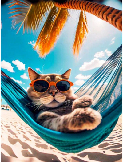 NORIMPEX Diamantové malování Kočka v houpací síti 30x40cm