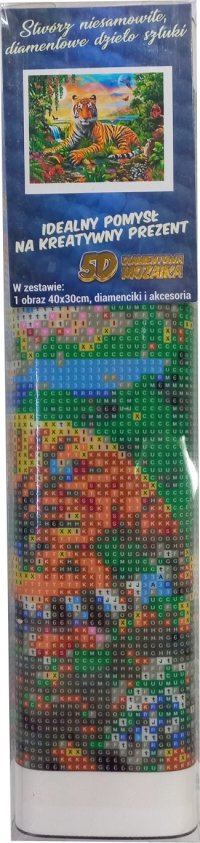 Balení obsahuje: plátno s předtištěným obrázkem, pero na aplikaci kamínků, misku na vysypání kamínků, vosk na nalepení, sadu barevných kamínků Diamantové malování - postup: Horní strana plátna je potažena lepidlem a překrytá průhlednou folií. Folii sundávejte postupně po částech tak, jak budete aplikovat kamínky. Při sejmutí celé folie najednou se může lepicí vrstva znečistit a kamínky by nemusely tak dobře držet. Plátno obsahuje znaky, které jsou uvedeny v přiložené legendě a odkazují na příslušný sáček s kamínky označený číslem. Kamínky z daného sáčku vysypejte do misky. Do hrotu pera naberte vosk, díky kterému se kamínky snadno přichytí na pero. Kamínky perem nanášejte na obrázek. Po nalepení dané barvy kamínky nasypejte zpět do sáčku a pokračujte s další barvou.