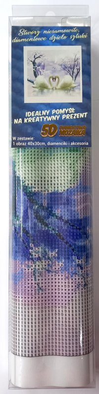 Balení obsahuje: plátno s předtištěným obrázkem, pero na aplikaci kamínků, misku na vysypání kamínků, vosk na nalepení, sadu barevných kamínků Diamantové malování - postup: Horní strana plátna je potažena lepidlem a překrytá průhlednou folií. Folii sundávejte postupně po částech tak, jak budete aplikovat kamínky. Při sejmutí celé folie najednou se může lepicí vrstva znečistit a kamínky by nemusely tak dobře držet. Plátno obsahuje znaky, které jsou uvedeny v přiložené legendě a odkazují na příslušný sáček s kamínky označený číslem. Kamínky z daného sáčku vysypejte do misky. Do hrotu pera naberte vosk, díky kterému se kamínky snadno přichytí na pero. Kamínky perem nanášejte na obrázek. Po nalepení dané barvy kamínky nasypejte zpět do sáčku a pokračujte s další barvou.